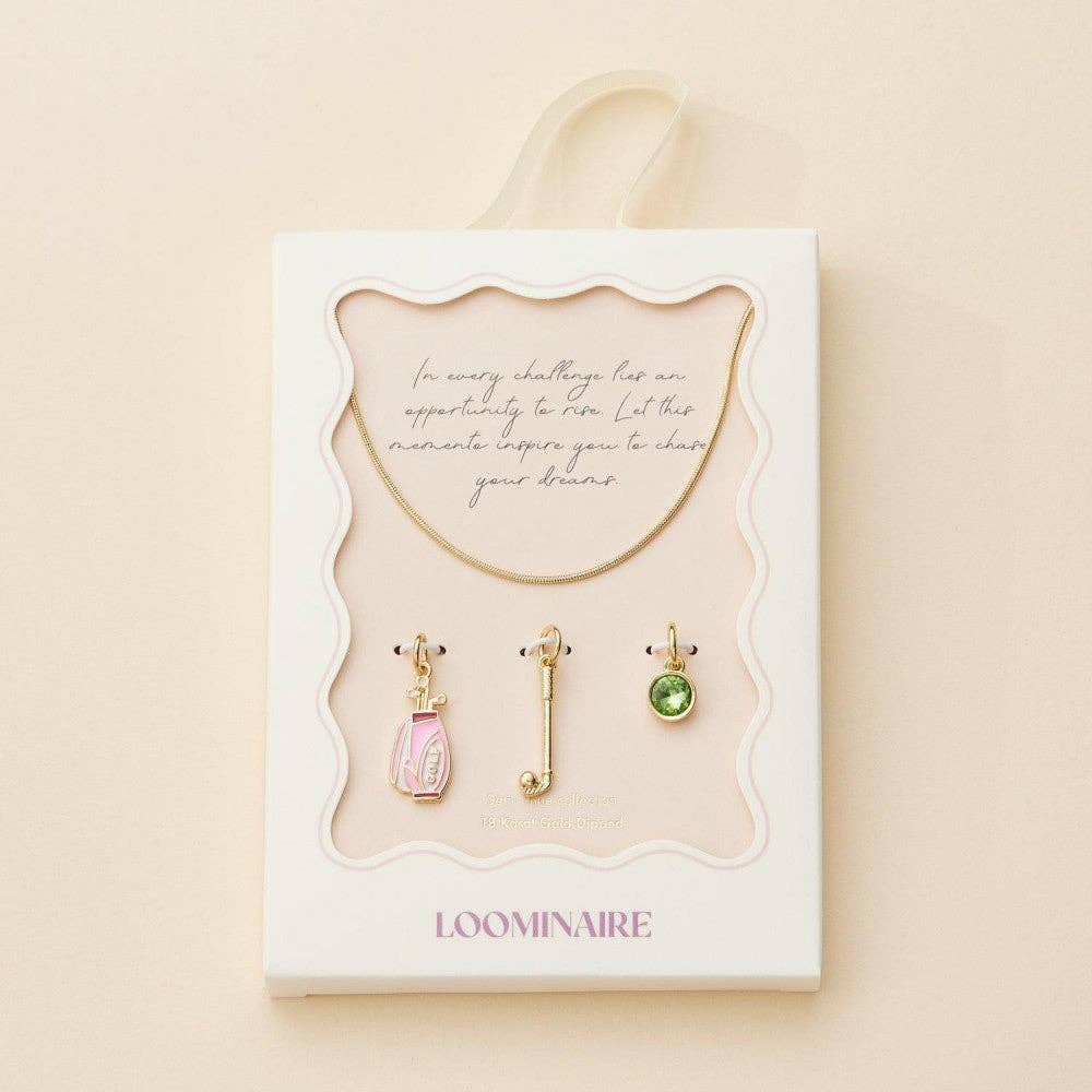 Snake Chain Link Necklace Featuring Golf Charms