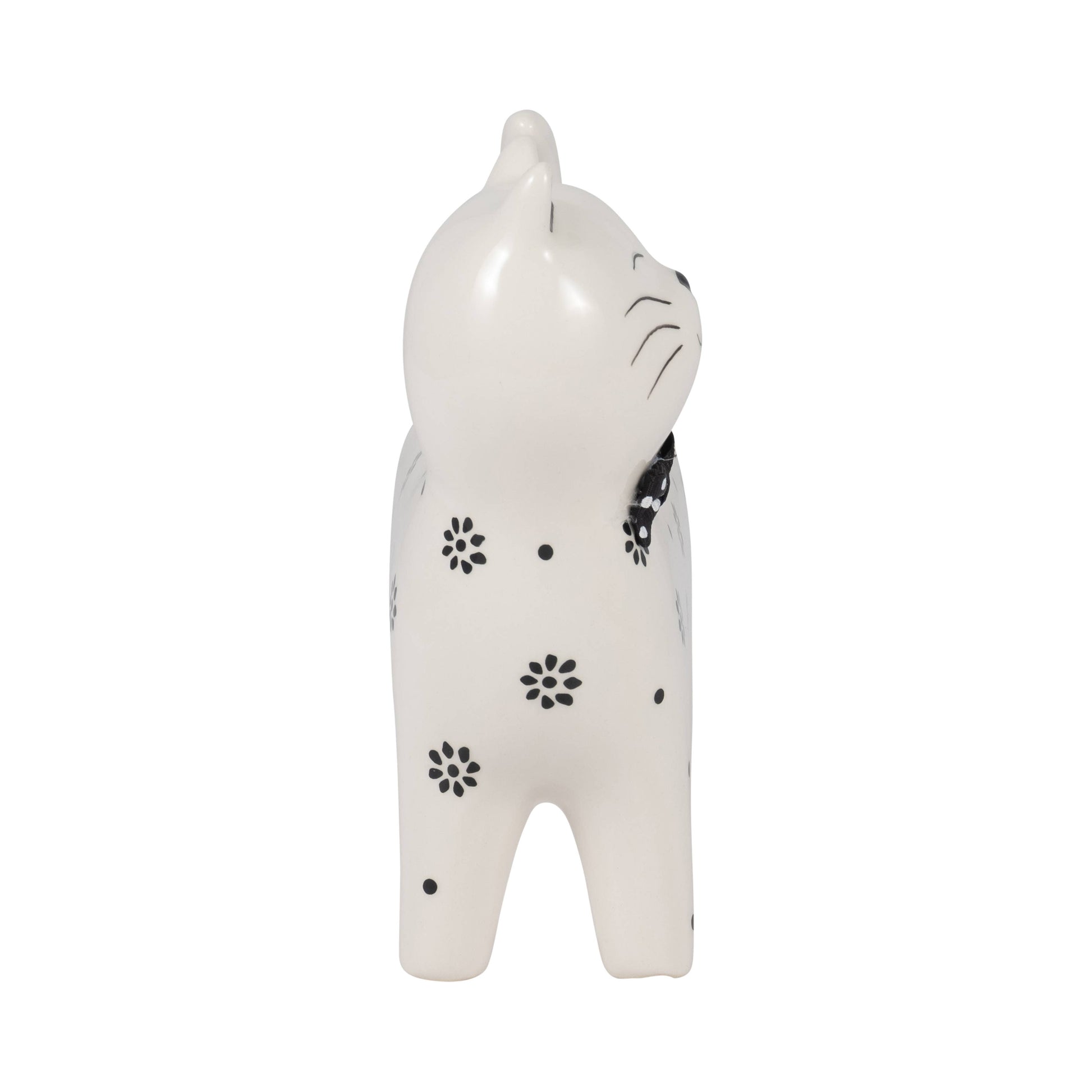 Ceramic Daisies Cat with Bowtie Figurine - White, 7 in.