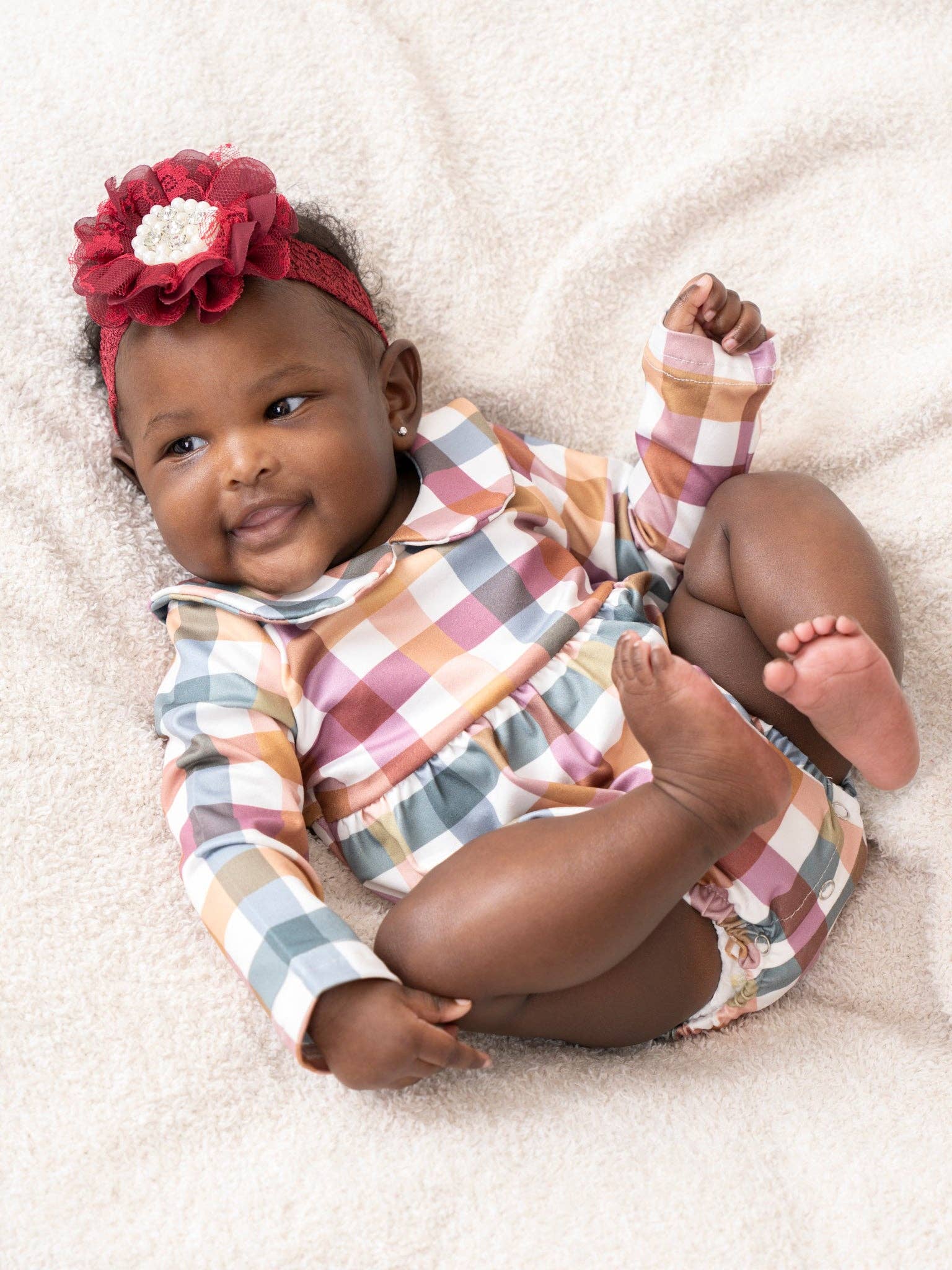 Everyone's fave is back with a new variation! The best fall set for siblings, cousins, or even best friends! This fall plaid bubble features a Peter pan collar, a cinched waist, and elastic leg openings.
