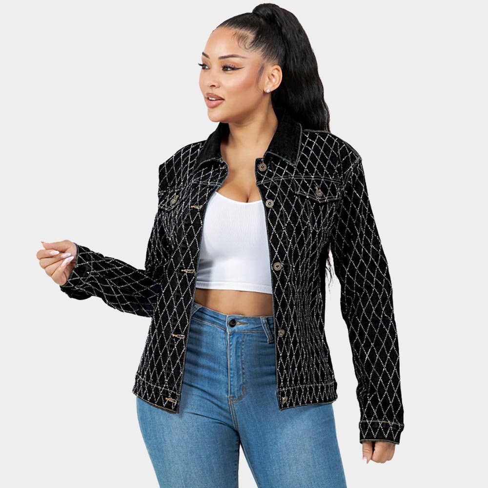 • Elevate your outerwear collection with this luxe diamond-stitched jacket. Designed with structured shoulders and a classic button-up front, this piece adds instant polish to any outfit. The soft texture paired with metallic stitch detailing creates a modern glam look that's perfect for both day and night. Features functional front pockets, full-length sleeves, and a flattering tailored fit that pairs effortlessly with jeans or leggings.