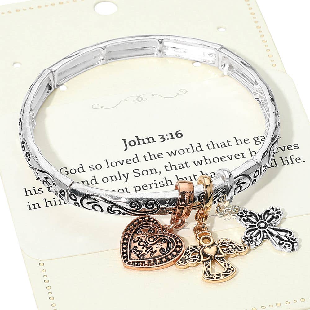 John 3:16 Message Angel Heart Cross Charm Stretch Bracelet