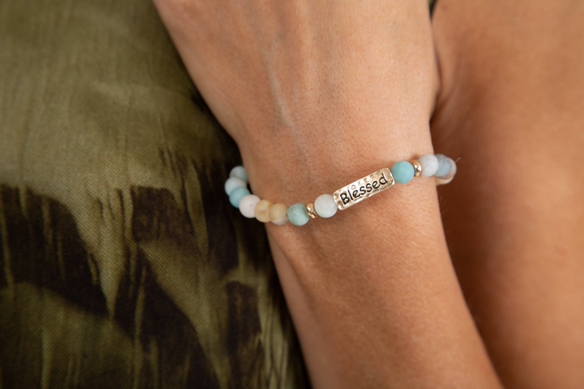 Stretch Stone Beads Inspirational Bar Bracelet, 4 Assorted