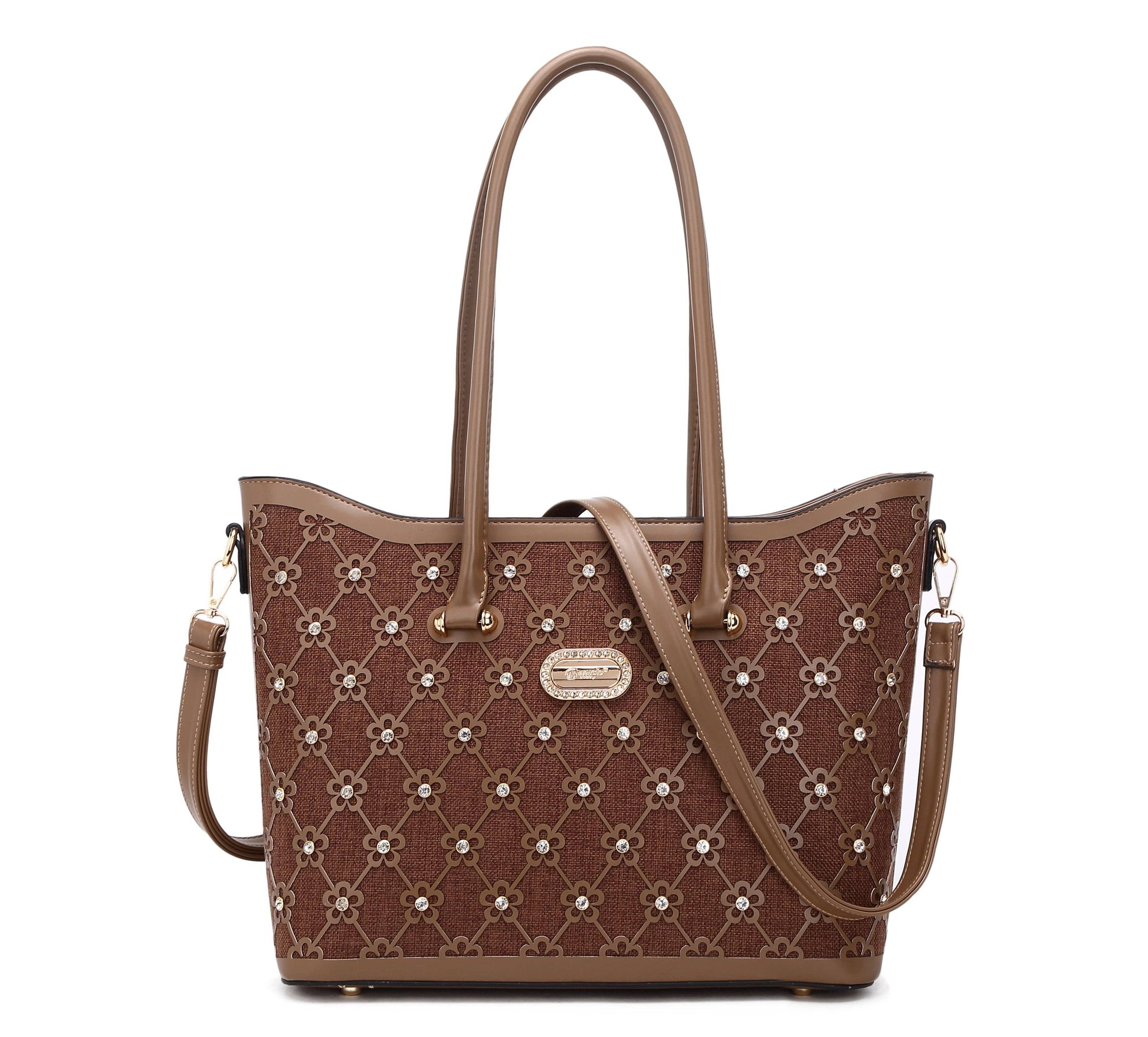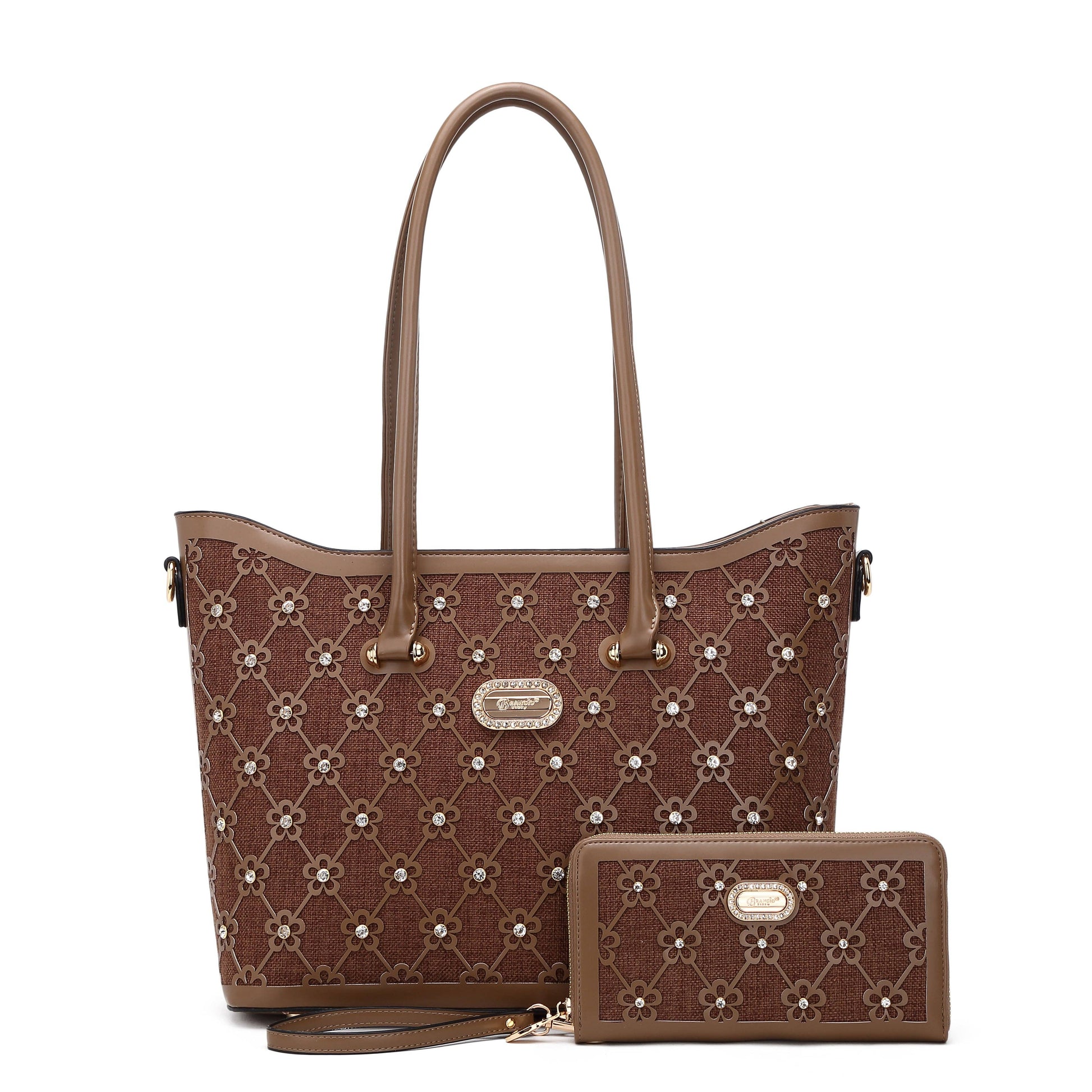 "Wildflower" is dedicated to us boss gals - who fearlessly charge towards our dreams & allow our spirits to be free & wild! This is a 3D Laser Cut Gold Stud Tote Bag made with custom canvas faux leather. It's elegant, yet eccentric - you'll be the spotlight of every room. Curated with engraved 3D floral accents & a laser cut pattern.