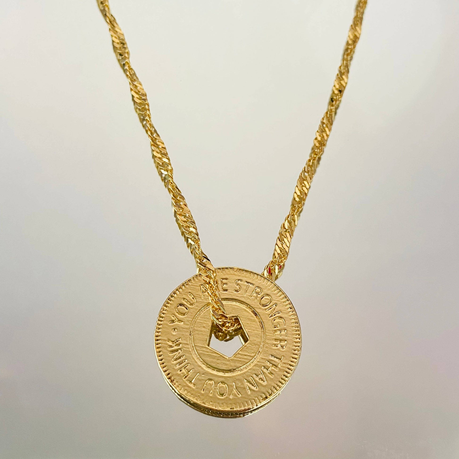 You Are Stronger Than You Think Necklace, Strength Necklace, Warrior Necklace, 18k Gold Filled Inspirational Coin Necklace, Positive Jewelry